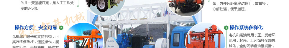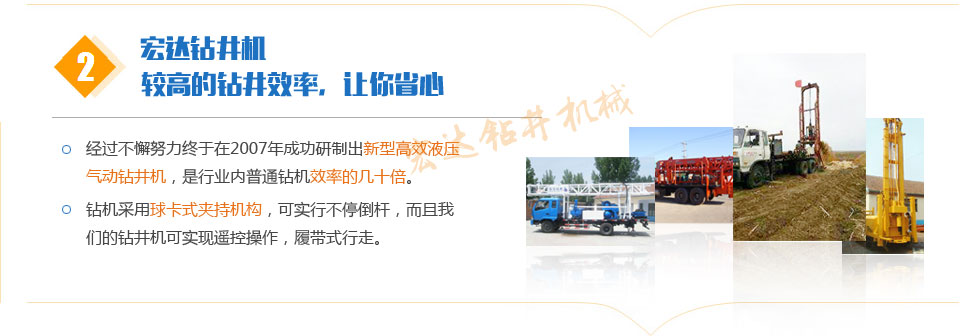 公司始終遵循"客戶第一、團隊精神、長遠利益、以人為本"的經(jīng)營理念。打井機公司擁有雄厚的技術(shù)力量。為廣大客戶提供熱情、周到、高標準的服務(wù)。公司擁有完整、科學(xué)的質(zhì)量管理體系。能為客戶提供滿意的服務(wù)是我們公司的榮耀。打造鉆井機設(shè)備精品、引導(dǎo)技術(shù)潮流是我們永久的追求。