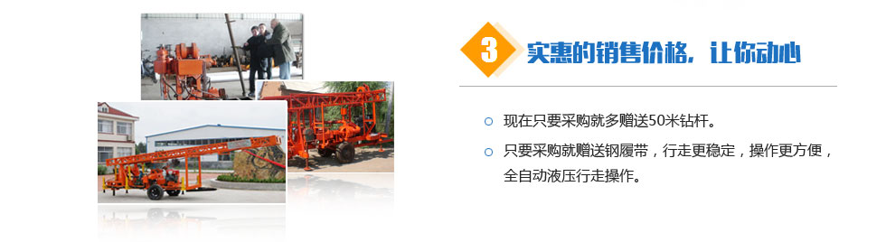 公司將繼續(xù)本著一如既往的努力,不斷發(fā)展。公司及時解決客戶生產(chǎn)過程中遇到的實際問題。創(chuàng)新文化:永不滿足,超越自我。以最完善的服務(wù)來滿足廣大用戶的需求。竭誠與您合作,共創(chuàng)美好明天。產(chǎn)品銷往全國各地,贏得用戶的一致好評,歡迎新老客戶光臨。水井鉆機公司真誠歡迎中外賓朋與本公司建立友誼。產(chǎn)品暢銷三十多個省市,深受廣大